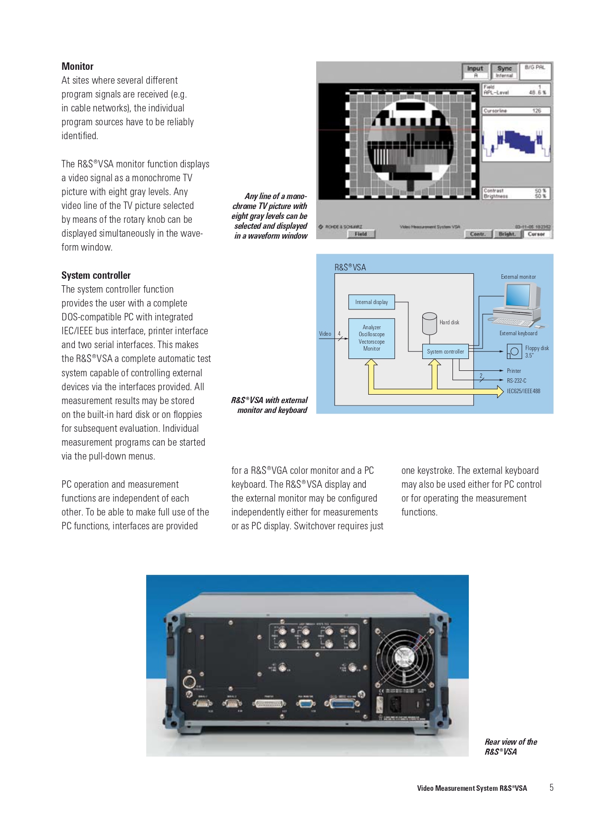 Hệ thống đo lường video R&S® VSA là một thiết bị đa năng, tích hợp năm công cụ đo lường mạnh mẽ trong một khung máy duy nhất: