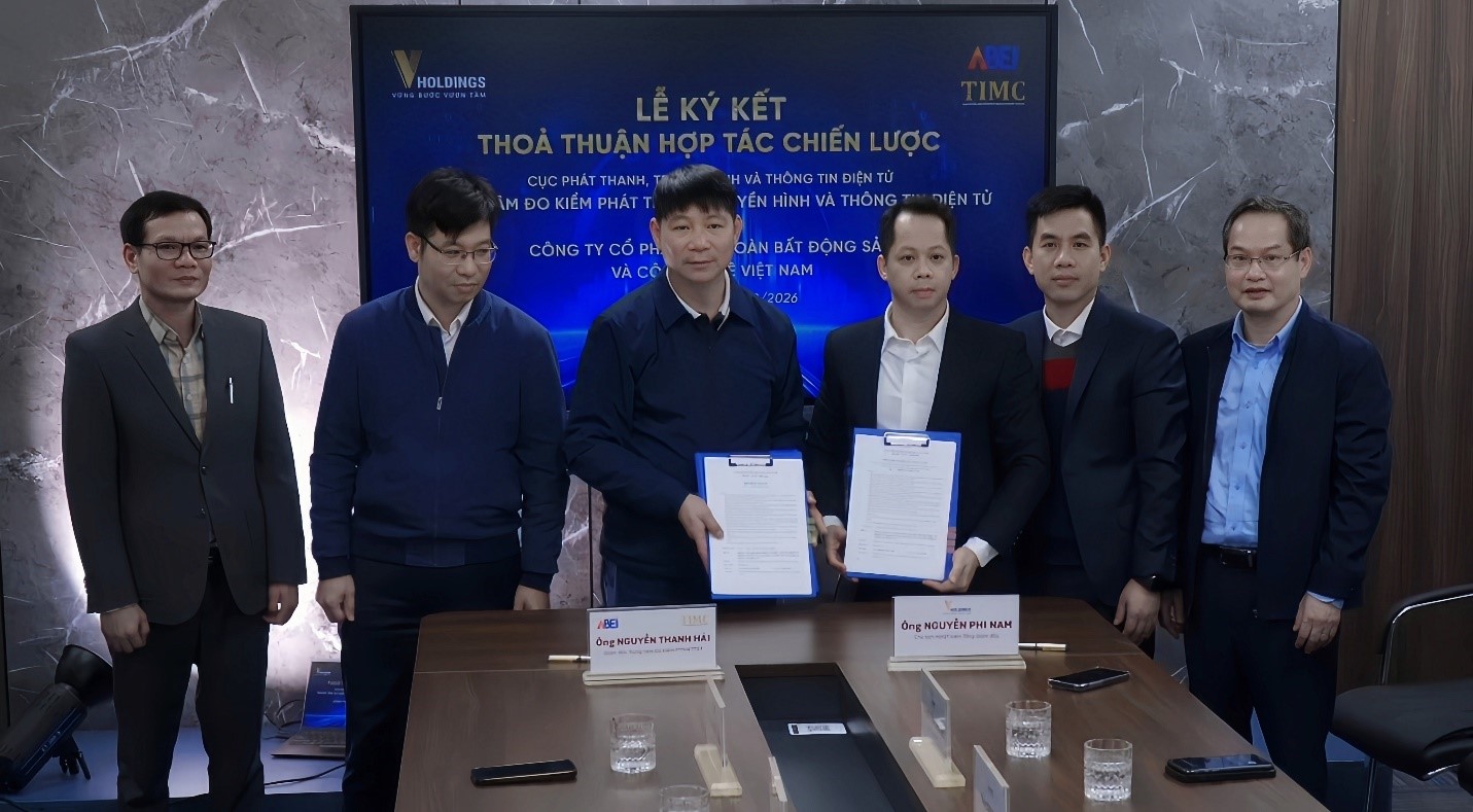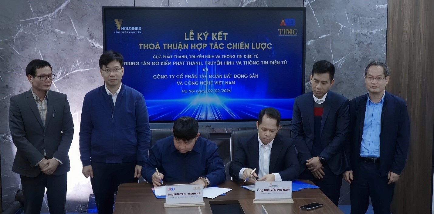 Tham dự lễ ký kết có ông Nguyễn Chấn – Phó Cục trưởng Cục Phát thanh, Truyền hình và Thông tin điện tử (PTTH&TTĐT); ông Nguyễn Thanh Hải – Giám đốc Trung tâm Đo kiểm Phát thanh, Truyền hình và Thông tin điện tử (TIMC); ông Nguyễn Phi Nam – Tổng Giám đốc của VHoldings cùng đại diện các bộ phận của TIMC và VHoldings.